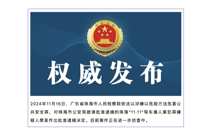 涉嫌以危险方法危害公共安全罪,珠海“11·11”驾车撞人案嫌犯被批准逮捕!