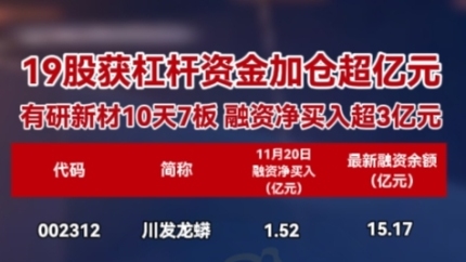 19股获杠杆资金加仓超亿元 有研新材10天7板 融资净买入超3亿元