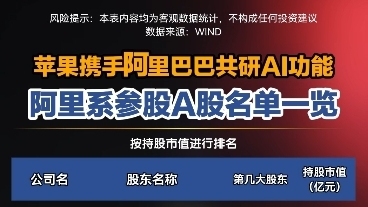 苹果携手阿里巴巴共研AI功能 阿里系参股A股名单一览(作者:陈见南 编辑:赵发新)