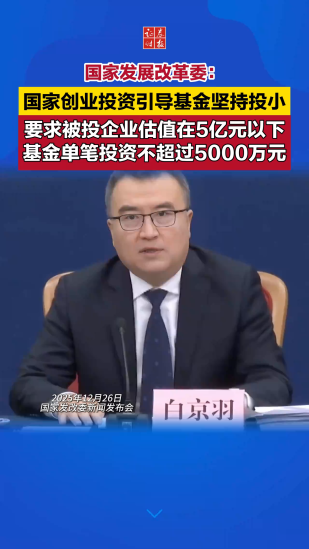 国家发展改革委:国家创业投资引导基金坚持投小,...