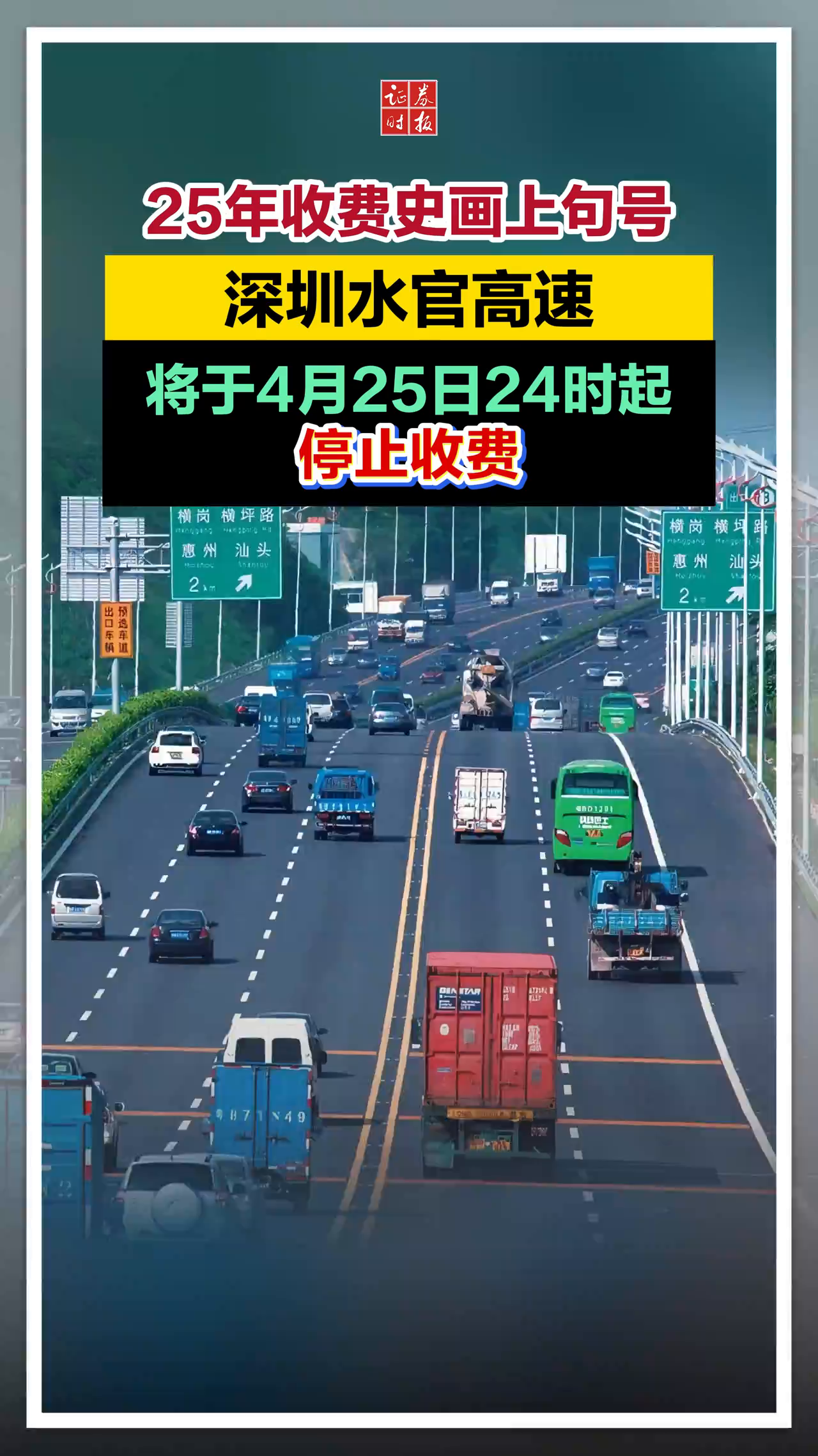 25年收费史画上句号,深圳水官高速将于4月25日停...