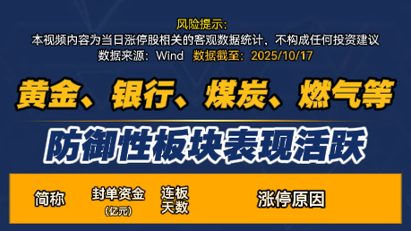 黄金、银行、煤炭、燃气等防御性板块表现活跃