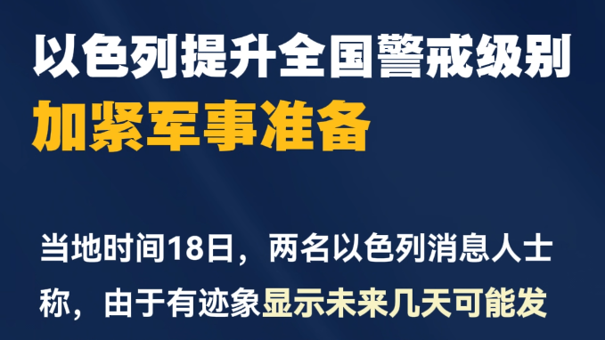 以色列提升全国警戒级别 加紧军事准备