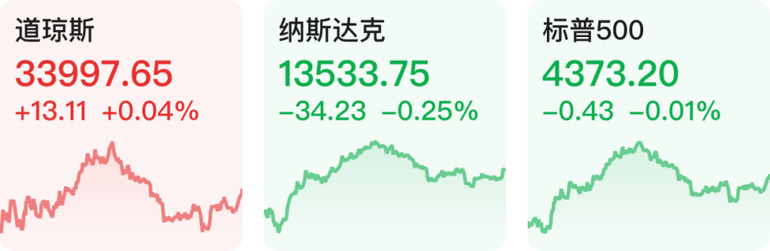 美股三大指数涨跌不一。截至收盘,道琼斯指数涨0.04%,纳斯达克指数跌0.25%,标普500指数跌0.01%。科技股多数下跌,半导体、区块链跌幅居前,英伟达跌超4%,芯科实验室跌超3%,英特尔、AMD、意法半导体、恩智浦跌超1%。热门中概股多数下跌,纳斯达克中国金龙指数跌0.91%。百度跌超4%,京东跌超3%。