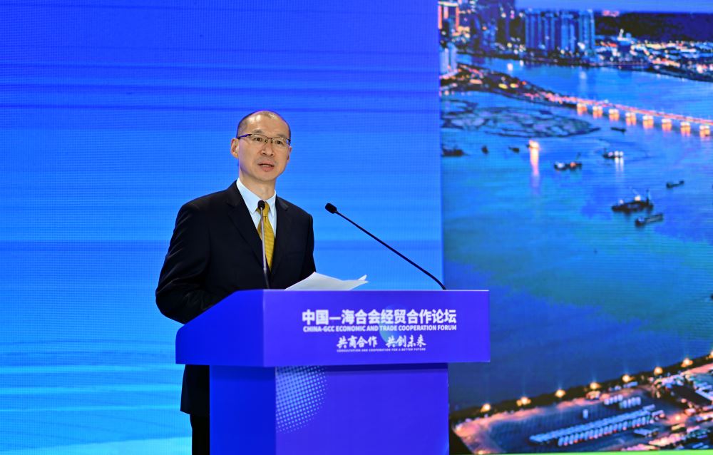 10月22日下午,由商务部、广东省人民政府共同主办的中国—海合会经贸合作论坛在广州开幕。本次论坛以“共商合作共创未来”为主题,围绕首届中国—海合会峰会成果和共识,共同探讨中海合作发展新机遇。广东省委书记黄坤明、商务部部长王文涛出席论坛开幕式并致辞,广东省委副书记、省长王伟中主持开幕式。海合会秘书长贾西姆•布达维发表致辞,阿曼、阿联酋、巴林、沙特、卡塔尔、科威特等海合会成员国有关部门负责人作交流发言。中外与会领导共同宣布论坛开幕。(李明珠、宋春雨文/图)