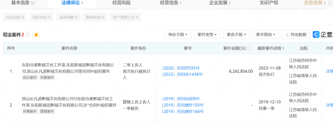 据中国执行信息公开网,近日,东阳仓果影视文化工作室、东阳新视觉影视文化有限公司新增一则被执行人信息,执行标的624万余元,涉及合同纠纷案件,执行法院为苏州市中级人民法院。