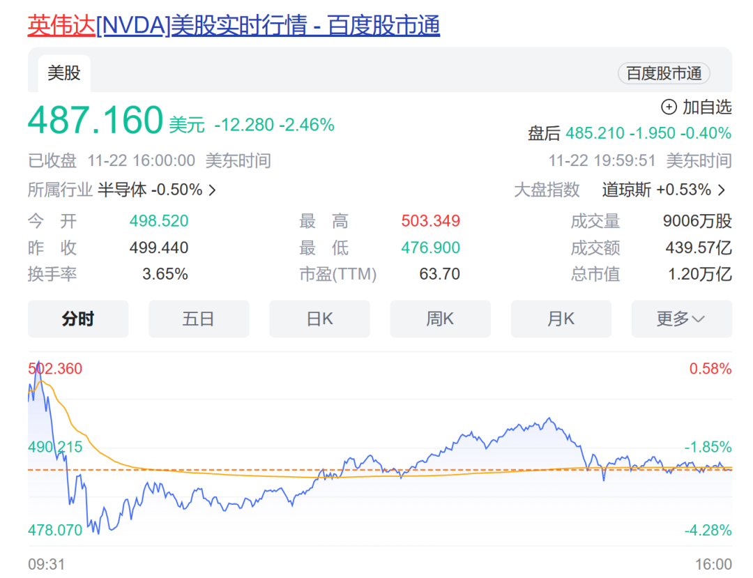 全球算力总龙头英伟达发布再创新高的新一季业绩,并回应美国收紧人工智能管制对公司在华数据中心业务产生负面影响,同时表示其他地区收入将抵消下滑影响,公司股价在美国时间11月21日收盘略跌0.92%,22日再次下跌2.46%。