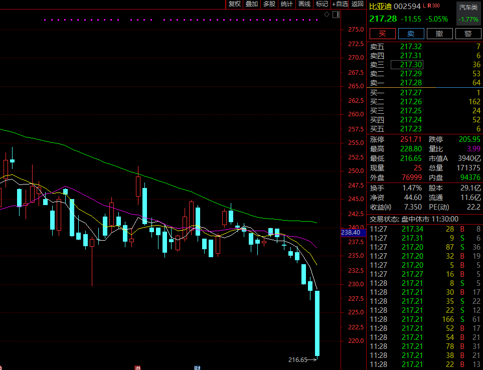 港股新能源汽车股震荡下行,比亚迪股份跌近5%,A股比亚迪跌幅超5%,股价创2022年3月以来新低。