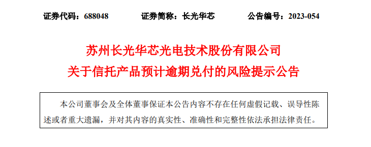 11月24日晚间,长光华芯(688048)公告称,公司购买的信托产品中融-隆晟1号集合资金信托计划预计逾期兑付。
