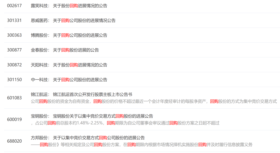 此外,今晚还有约20家上市公司披露回购进展显示,相关上市公司在11月均积极实施了回购方案。