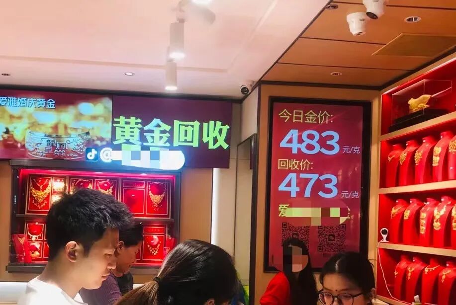 证券时报记者在水贝片区多个大型卖场,均看到有不少消费者前来咨询回收黄金业务。相比记者上一次探访,越来越多的店铺打出“高价回收黄金”的广告。“只要是纯黄金饰品我们就会回收,回收价格为当天的每克售价减去10元。例如今天的金价是每克483元,回收价则是473元。”一家店主告诉记者:“最近金价上涨,回收量环比上涨近20%。您可以拿旧金折算钱后再在店里购买金饰,也可以选择直接‘提现’。”