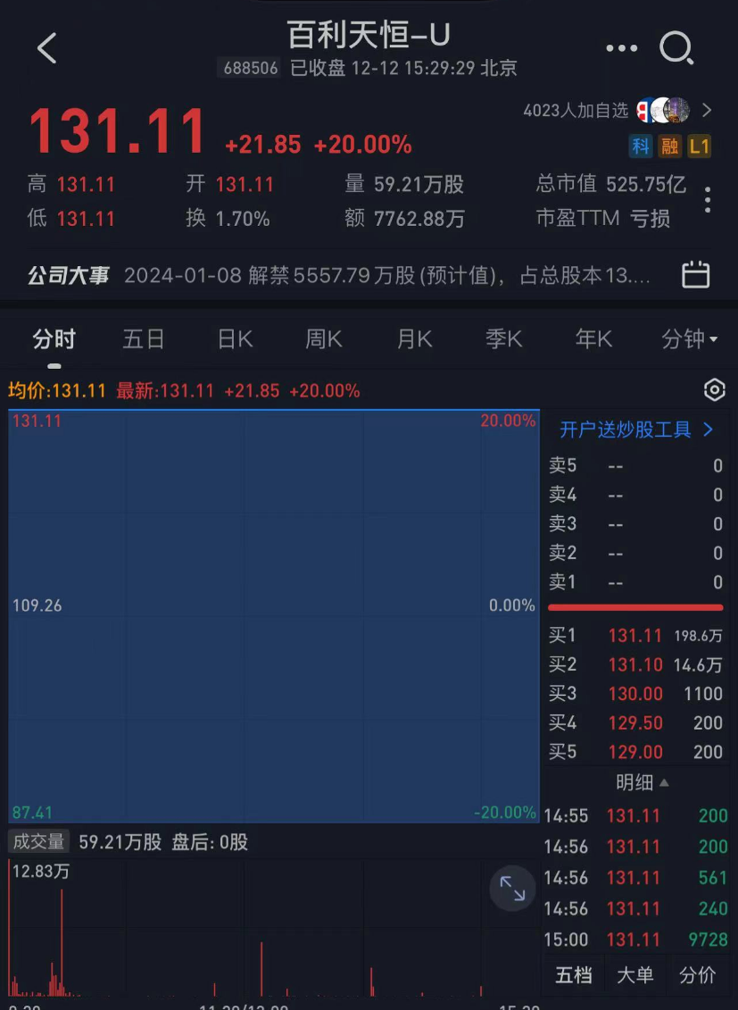 个股方面,12月12日,百利天恒公告,子公司SystImmune将EGFR/HER3 ADC新药BL-B01D1权益与百时美施贵宝(BMS)合作。受此利好影响,百利天恒一字板开盘,20cm涨停。
