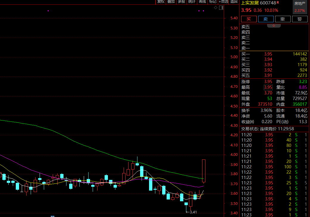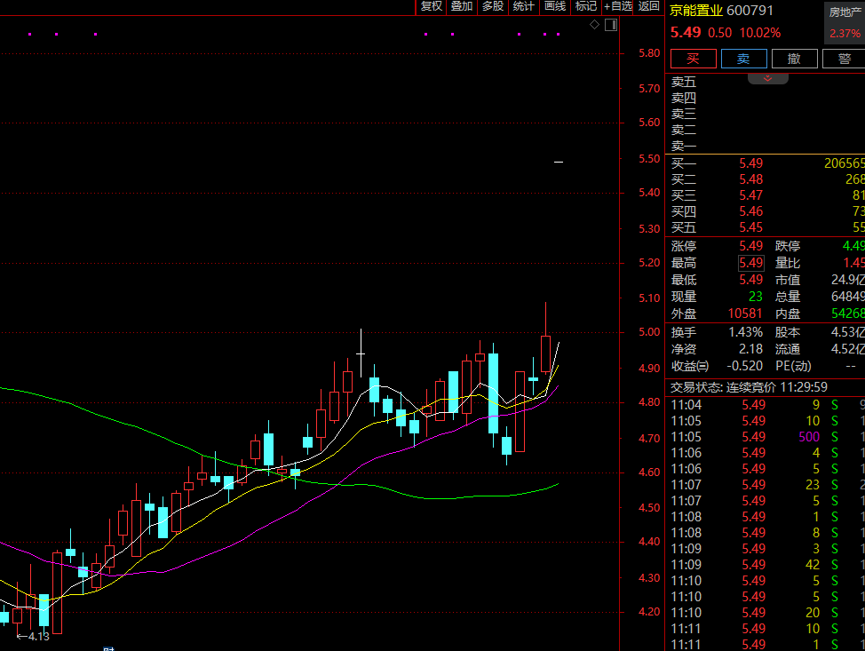 北京、上海两地房地产企业领涨,京能置业开盘一字涨停,股价创三个半月新高;上实发展、大龙地产、新黄浦等盘中均直线拉升封涨停。