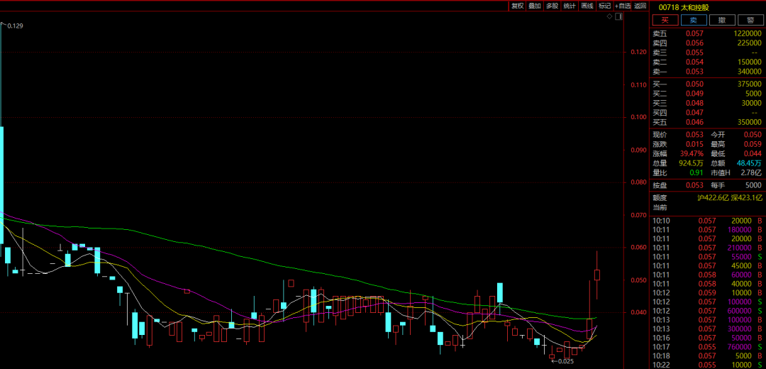 在外围市场走好的带动下,港股今日大幅走强,恒生指数放量高开高走,截至发稿涨逾3%,恒生内地地产指数、恒生互联网科技指数等涨超4%。太和控股盘中一度涨逾55%,闽港控股、美东汽车等涨幅居前。