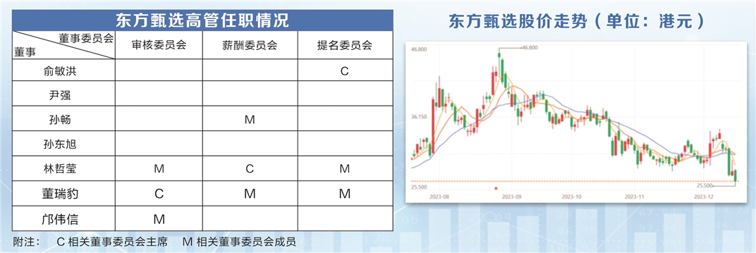 董事名单显示,东方甄选执行董事为俞敏洪和尹强,非执行董事为孙畅和孙东旭,独立非执行董事为林哲莹、董瑞豹、邝伟信。
