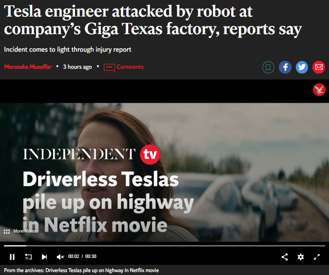 这一事件给这位受害者左手留下了一个“开放性伤口”。特斯拉提交给特拉维斯县和联邦监管机构的2021年工伤报告披露了该事件。