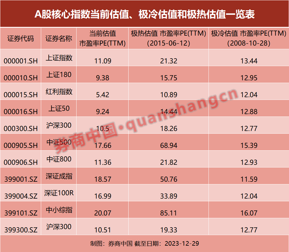A股估值已至历史低点