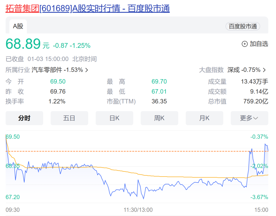 截至目前,拓普集团收盘价为68.89元/股,距离前述增持价格上限尚有一定空间。相关增持主体表示,本次增持是基于对公司内在价值的合理判断和对未来持续高速发展的坚定信心,同时维护中小投资者利益,促进资本市场平稳健康发展。