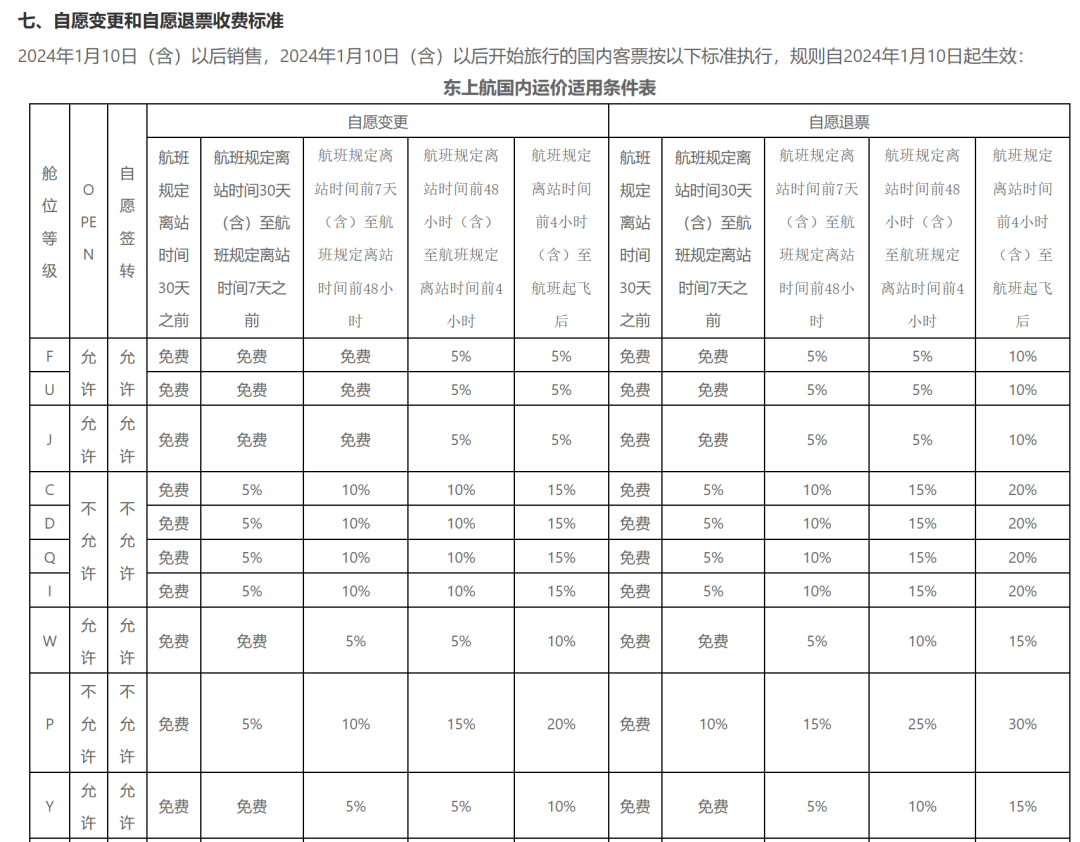 东航表示,新版规则对涉及客票自愿退改业务的收费标准进行了调整,新增航班起飞前30天之外的免费退改规定,详见《东上航国内运价使用规则》。