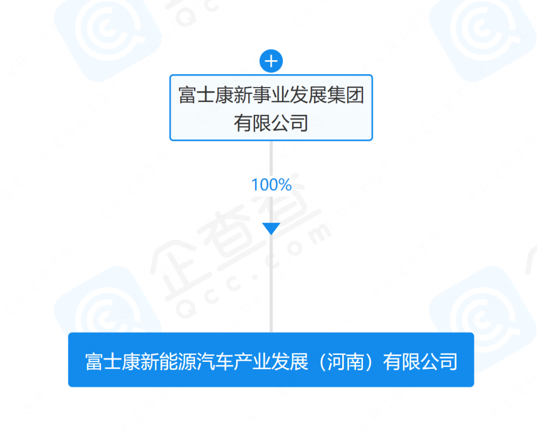 企查查股权穿透显示,该公司由富士康新事业发展集团有限公司全资持股。