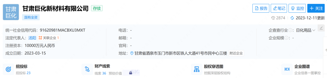 企查查显示,上述项目的实施方巨化新材料有限公司,成立于2023年3月,注册资金为1亿元,巨化集团全资子公司。
