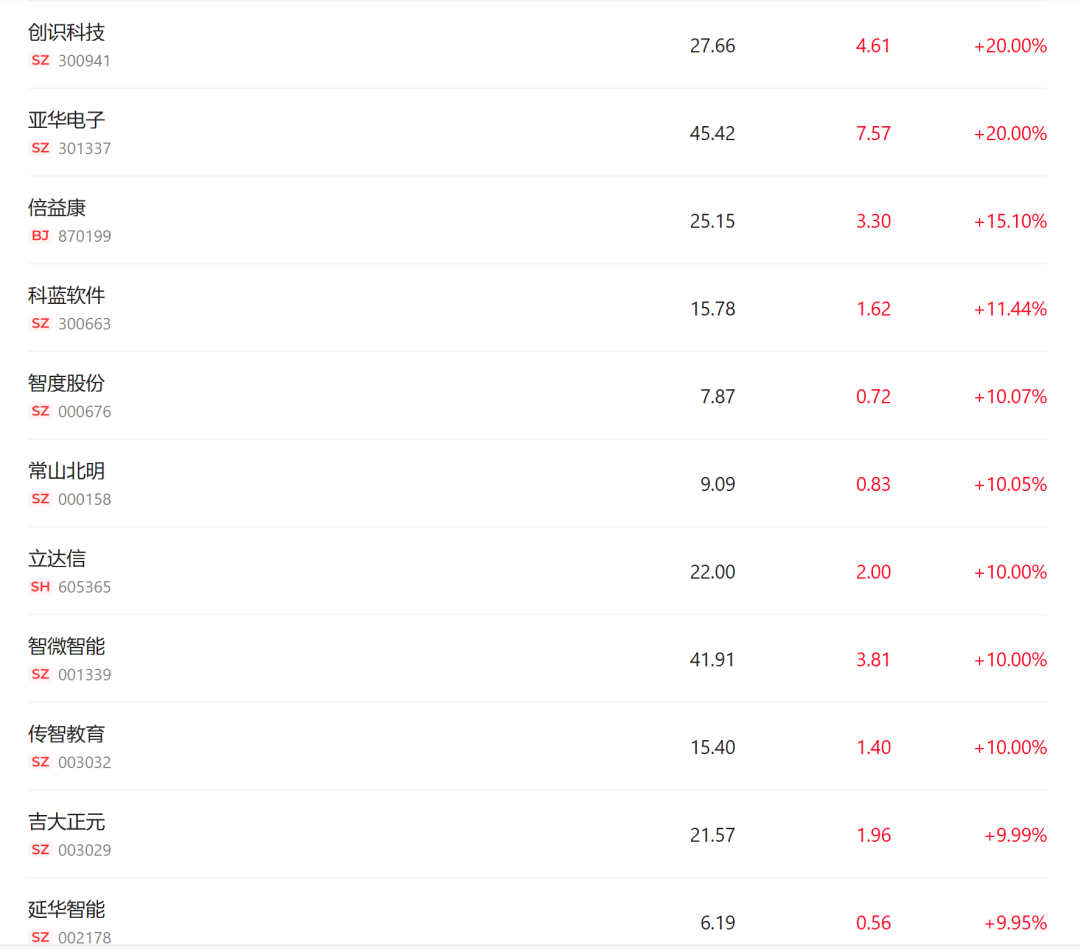 数字货币概念早间放量高开高走,板块指数一度涨逾3%。智度股份大幅高开后秒速涨停;吉大正元同样高开后直线拉升,仅用约2分钟就封死涨停;科蓝软件、软通动力、润和软件等涨幅居前。