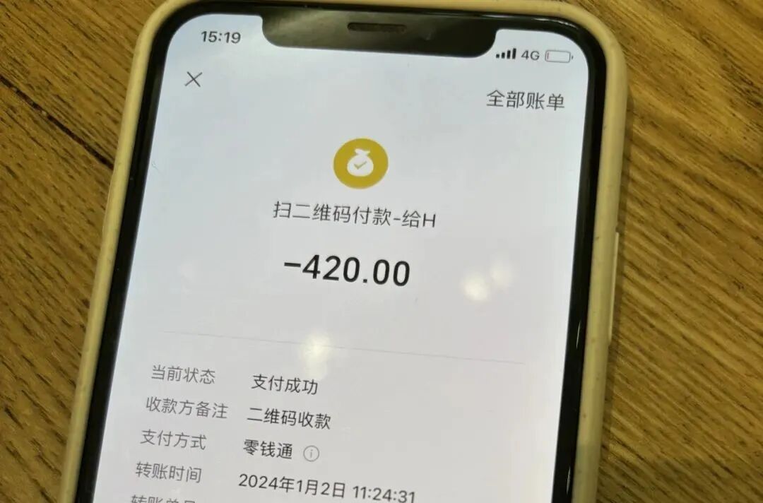 朱小姐支付了420元的车费
