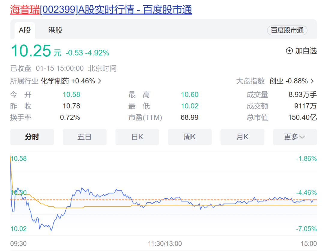 海普瑞并非唯一经历过电信诈骗的上市公司,但却创下了A股史上最大电信诈骗金额的记录。受此影响,1月15日,海普瑞股价大跌,盘中跌幅一度超7%,收盘跌4.92%,市值150亿元。