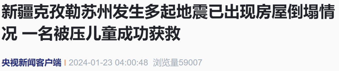 新疆克孜勒苏州发生多起地震已出现房屋倒塌情况,一名被压儿童成功获救