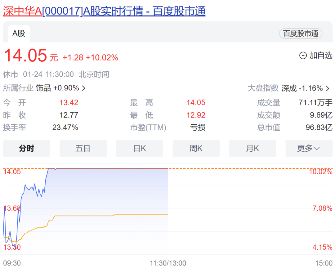 个股方面,深中华A早盘再度涨停,走出12连板。