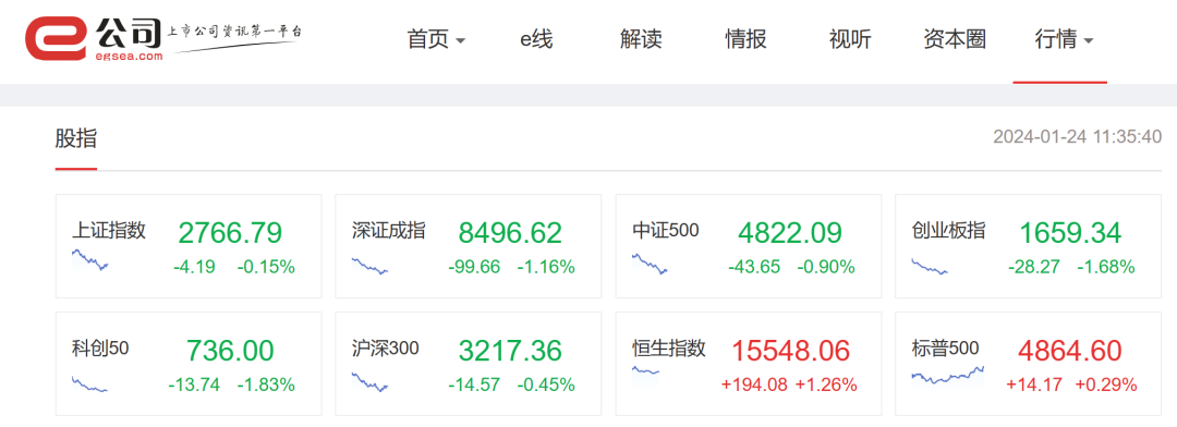 1月24日,三大指数高开低走,深成指下挫跌逾1%,沪指跌0.15%,创业板指跌1.68%。