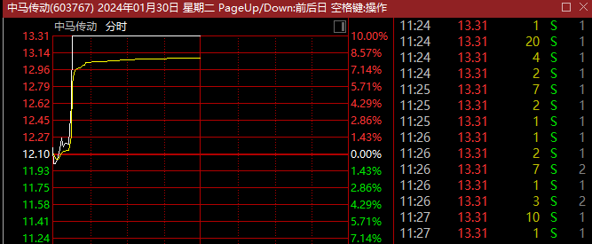 中马传动同样于今日公布业绩预增公告,预计2023年实现净利润6900万元—7900万元,同比增长63.33%—87.01%。早间,中马传动开盘略微震荡后,股价放量垂直涨停,半日成交超昨日全天成交1倍以上。