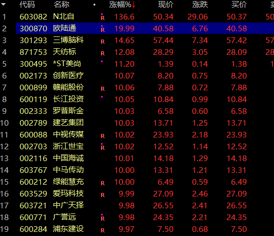 此外,赣能股份、浙江世宝、中国海诚、广誉远、深南电A等业绩预增股,早间也强势涨停。