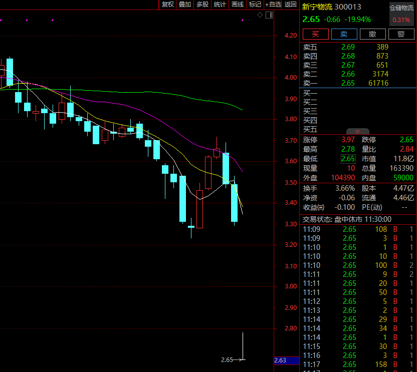 新宁物流也预计,2023年度期末净资产为负值,根据《深圳证券交易所创业板股票上市规则》第10.3.1条第一款第二项的规定,在公司2023年年度报告披露后,公司股票交易可能被实施退市风险警示。
