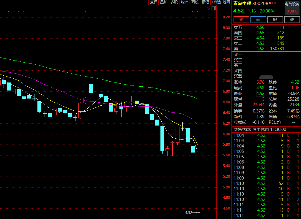 青岛中程公告,预计2023年归属于上市公司股东的净利润亏损7.7亿元—10.78亿元。上年同期归属于上市公司股东的净利润亏损约1.53亿元。早间,青岛中程20%一字跌停。