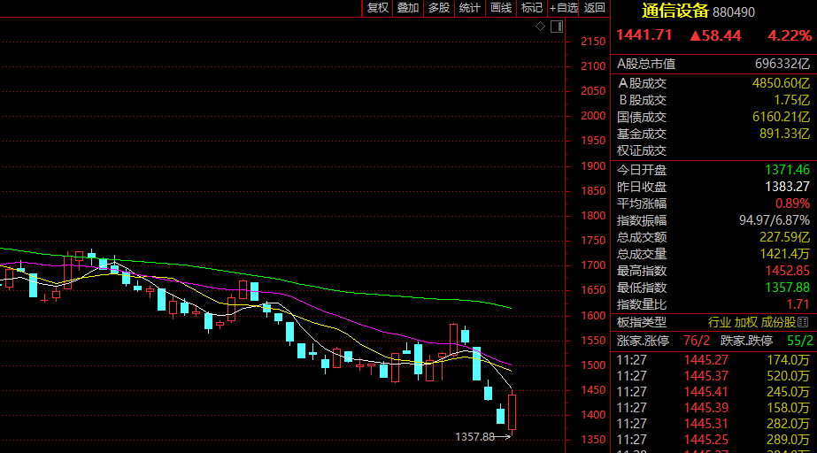 通信设备股早间低开高走,板块指数由一度跌近2%,转变成最高涨近5%,半日成交接近昨日全天成交。剑桥科技、铭普光磁、中际旭创、天孚通信等涨停或涨超10%。