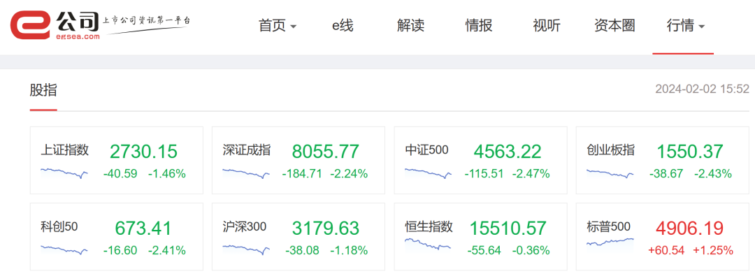 2月2日,两市股指早盘冲高后一路下跌,午后跌幅加大,沪指一度跌近4%;尾盘出现反弹,股指跌幅收窄。截至收盘,沪指跌1.46%,2700点失而复得,深证成指跌2.24%,创业板指跌2.43%。