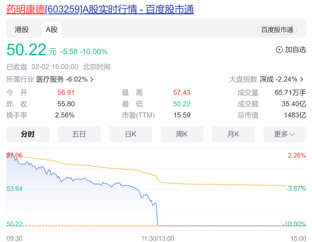 个股方面,2月2日药明系继续走低,药明康德A股午后跌停,成交额超35亿元,药明康德H股一度跌逾26%,药明生物午后一度跌超22%,创2019年1月以来新低。