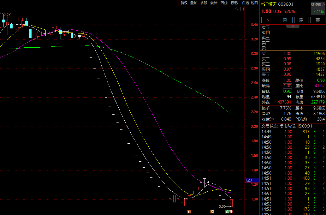 2月2日,*ST博天出现“地天板”,盘中逆势涨停,收报1元/股,全天成交6040万元,公司市值9.68亿元。