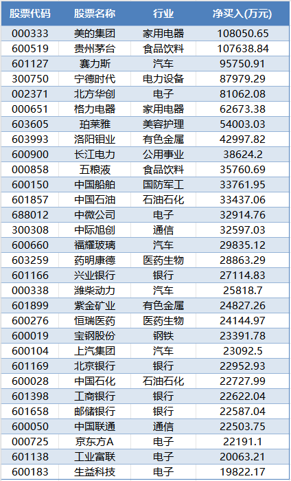 汽车也是北上资金重点加仓的行业。