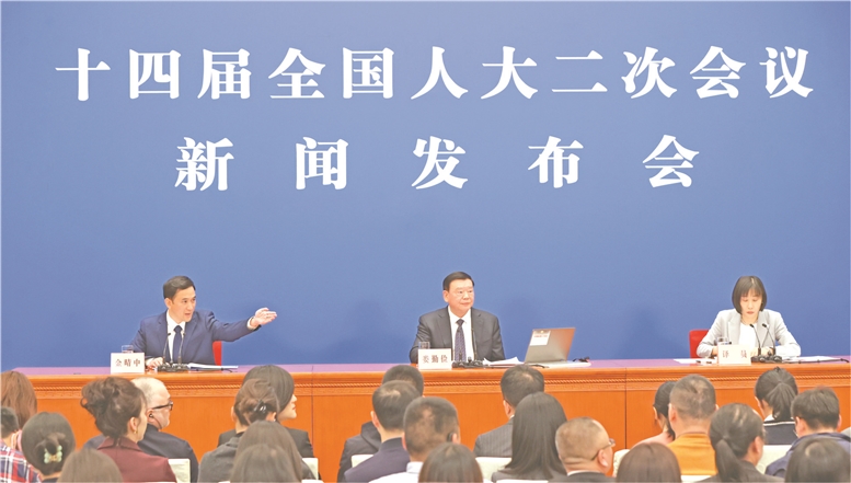 十四届全国人大二次会议新闻发布会3月4日举行,新任大会发言人娄勤俭首次亮相,并就大会议程和人大相关工作作出回应。娄勤俭表示,全国人大及其常委会将稳中求进推动立法工作,以高质量立法保障经济高质量发展。