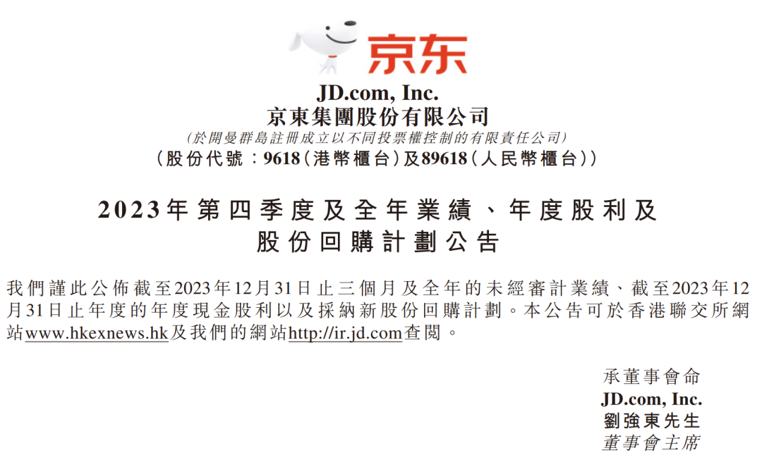 京东集团3月6日晚在港交所公告,公司董事会已批准一项新股份回购计划,于公司现有股份回购计划于2024年3月17日届满后生效。根据新股份回购计划,公司可于截至2027年3月的未来36个月内回购价值不超过30亿美元的股份。