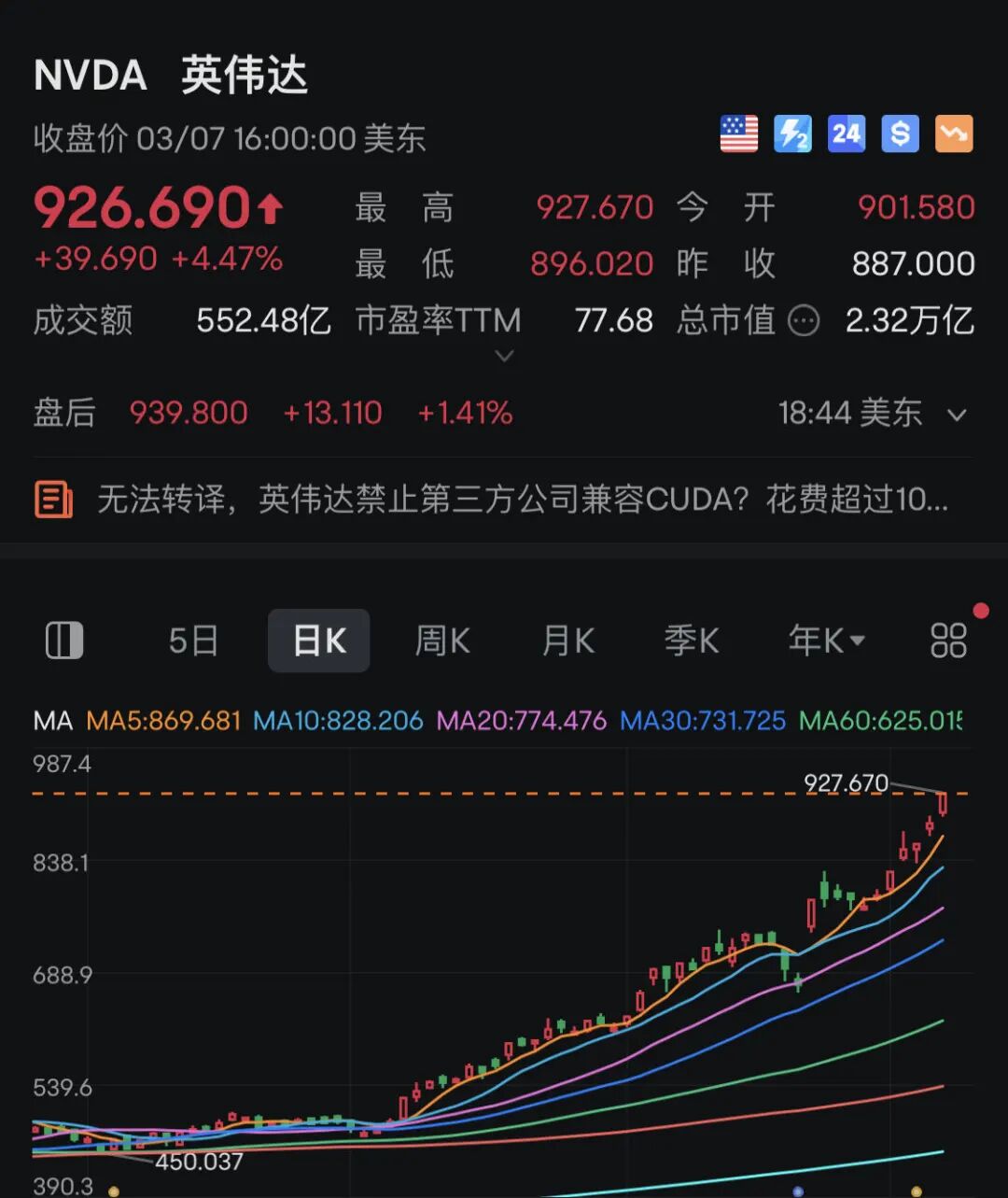 英伟达股价突破900美元