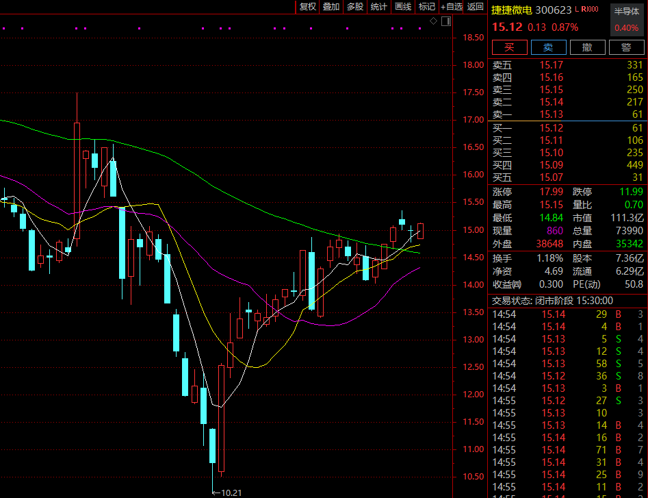 捷捷微电是集功率半导体器件、功率集成电路、新型元件的芯片研发和制造、器件研发和封测、芯片及器件销售和服务为一体的功率(电力)半导体器件制造商和品牌运营商。该公司本周股价上涨近5%至15.12元/股,当前市值约111亿元。