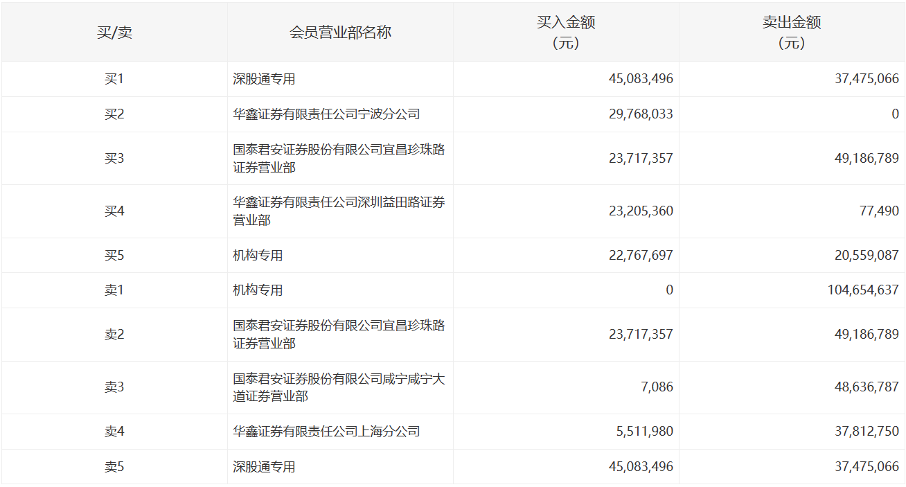 证券时报e公司讯,四川九洲涨停,成交额20.66亿元,换手率14.19%,盘后龙虎榜数据显示,深股通专用席位买入4508.35万元并卖出3747.51万元,一机构净买入220.86万元,一机构净卖出1.05亿元。