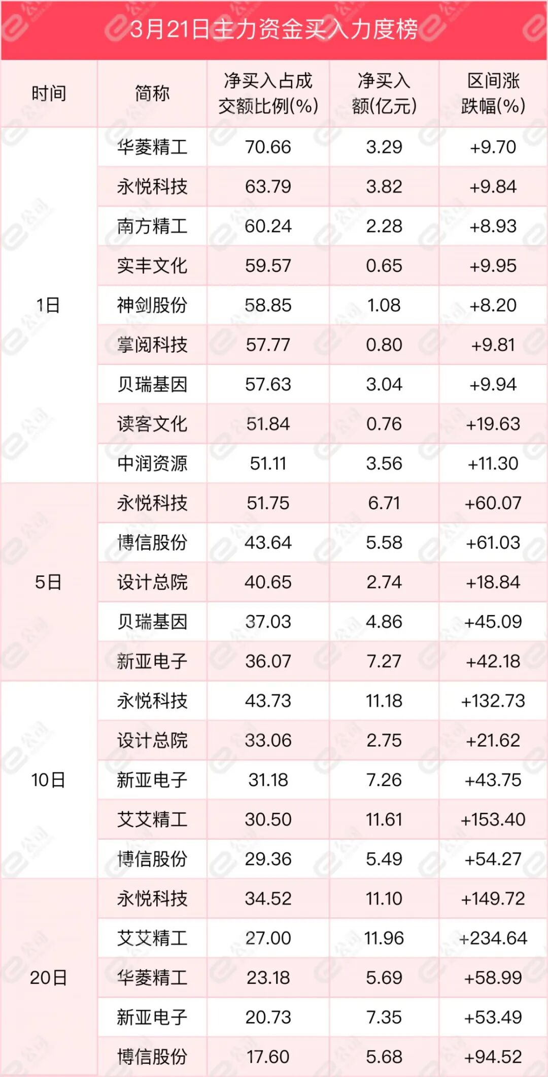 从主力资金买卖力度来看,华菱精工、永悦科技、南方精工获主力资金大力买入,净买入额占当日成交额比例分别为70.66%、63.79%、60.24%,净买入额分别为3.29亿元、3.82亿元、2.28亿元。