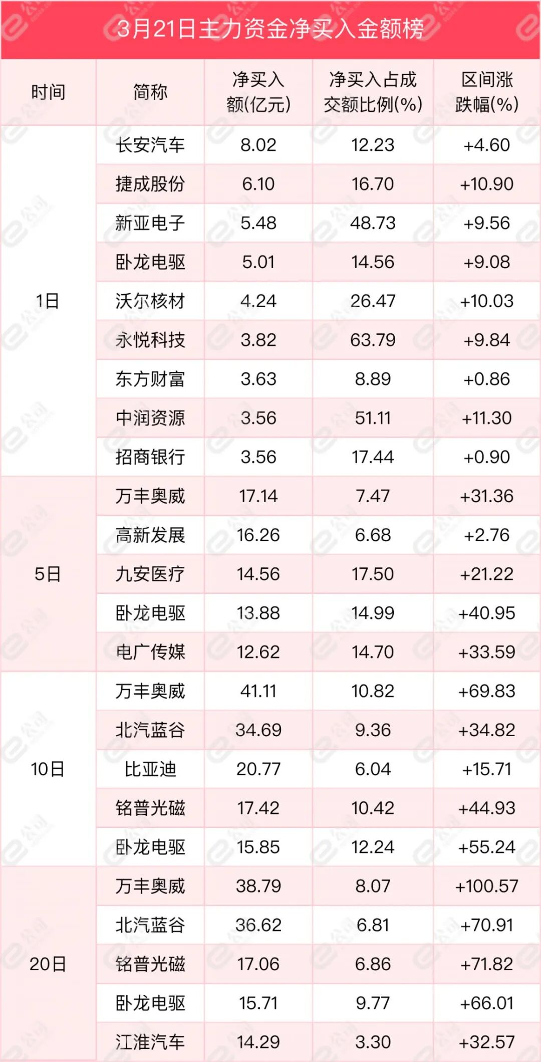 e公司数据统计显示,3月21日沪深两市主力资金净流入41.19亿元。