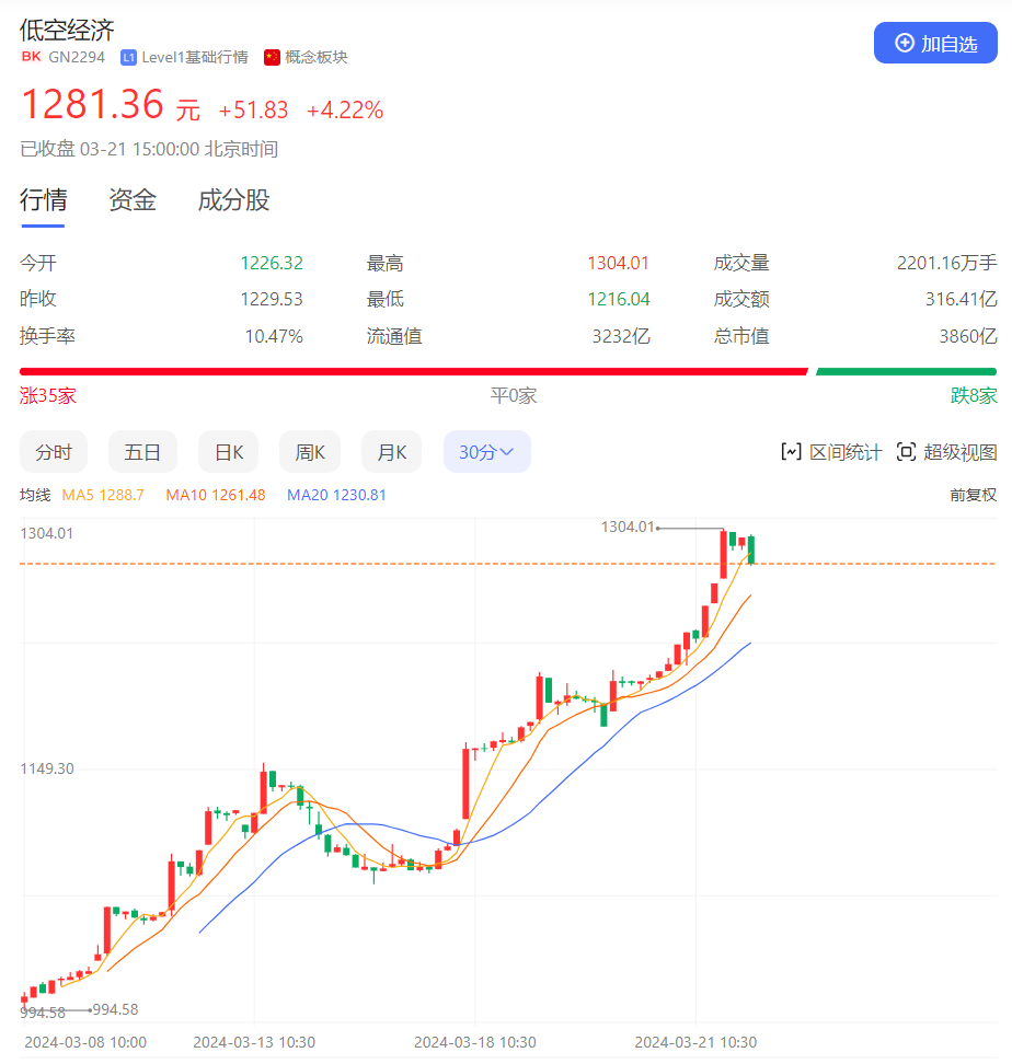 今日低空经济板块指数放量大涨4.22%,再创历史新高。