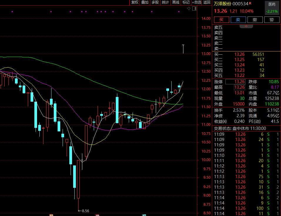 万泽股份此前预告,2023年度实现净利润1.56亿元—2.11亿元,同比增长53.54%—107.73%。今日早间,万泽股份开盘涨停,股价创年内新高,半日成交较昨日激增5倍以上。