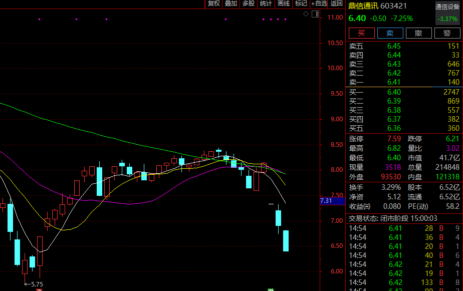 4月1日,鼎信通讯股价跌停,4月2日、3日分别大跌5.87%、7.25%。